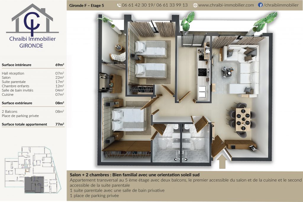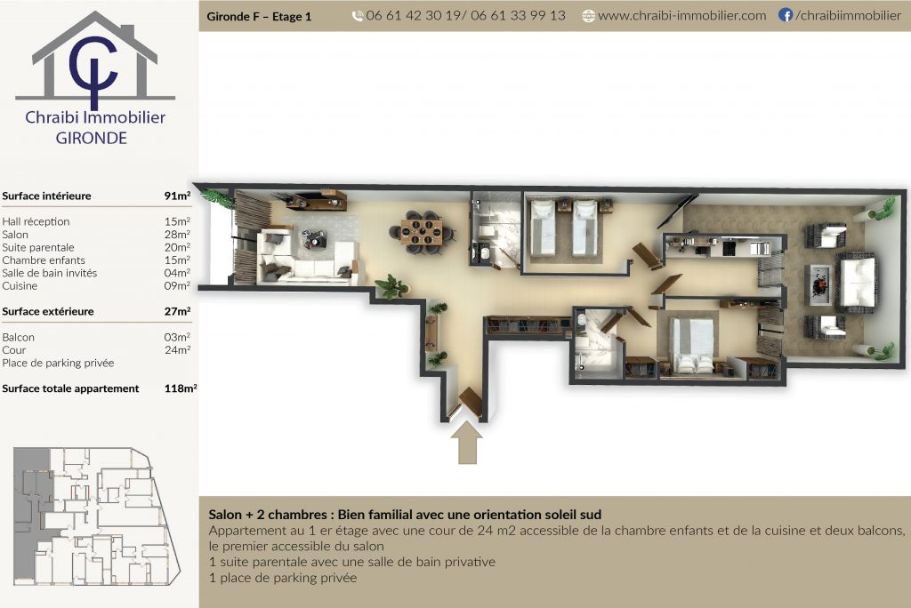 Saphir F : APPARTEMENT 2 CHAMBRES