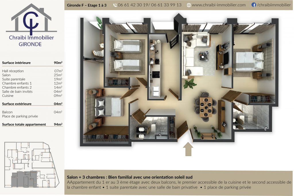 Saphir F : APPARTEMENT 3 CHAMBRES